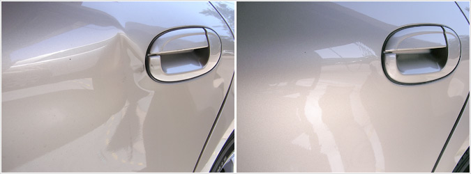 Using specialized tools and techniques, the damaged panels are restored without the use of fillers or paints.